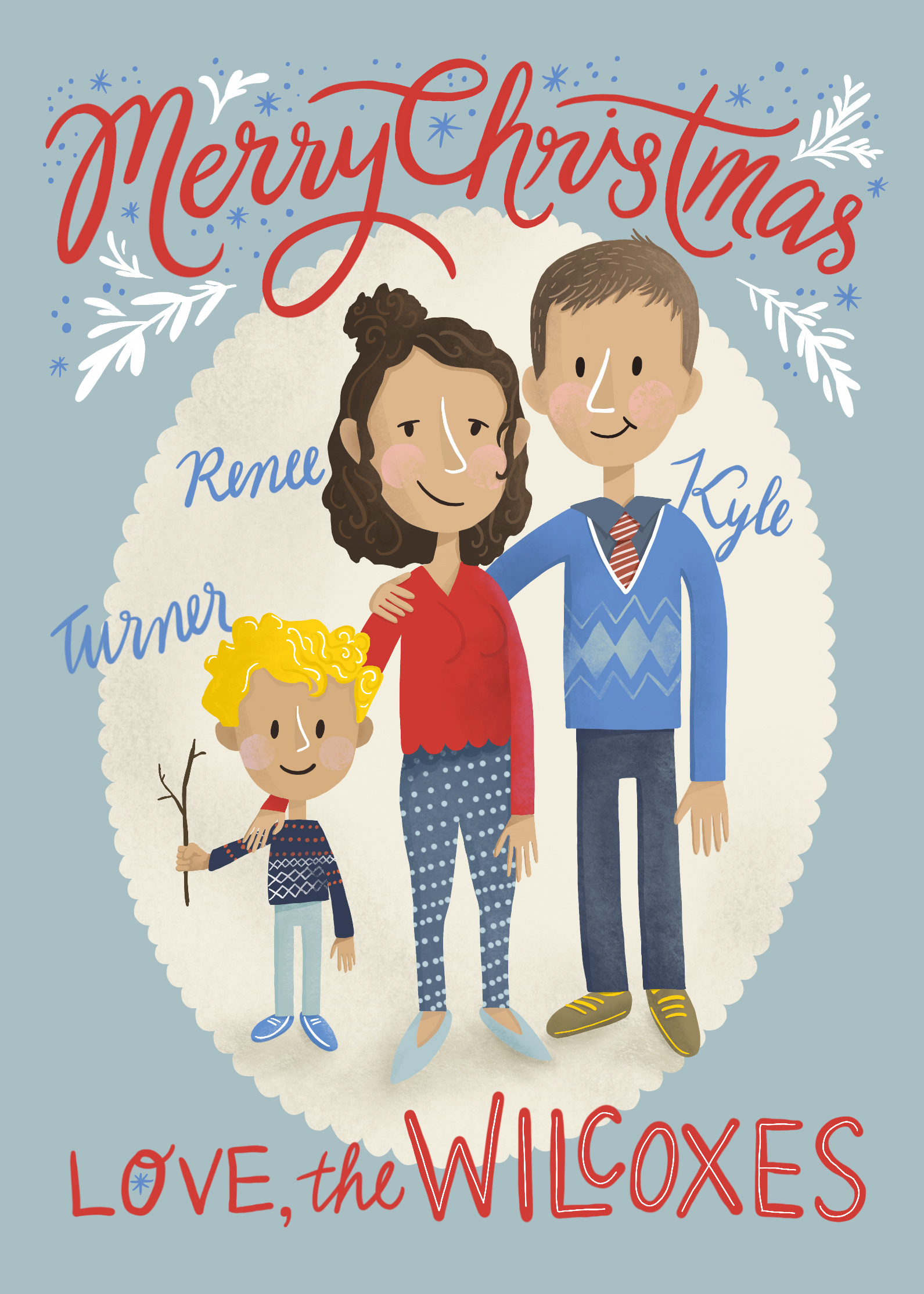 I illustrated my family for our 2018 Christmas card. I added whimsical lettering and flourishes to top it off. It's so fun to design Christmas-y things!